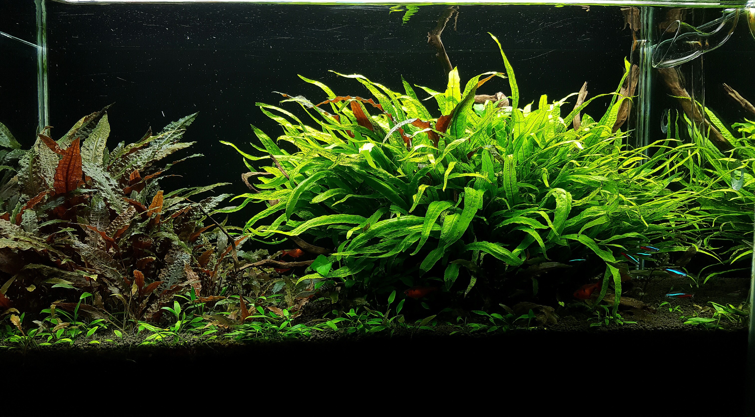 Akvárium méret: 156L Világítás: 2x39W Osram T5 6500K napi 8órában Szűrés: Tetratec EX1200 Szűrőanyag: 1x Matrix trop - 2x Eheim substrat pro - 1x ADA biorio+perlon Tápozás : Heti 9ml TF Planter + 2naponta 3ml macro Talaj: Ista plant soil Táptalaj: Sera+JBL 50% -os keveréke Dekor: Redmoor fa Növányek:Microsorium teropus-Microsorium philippine-Cryptocoryne tropica-Cryptocoryne parva-Anubias nana
