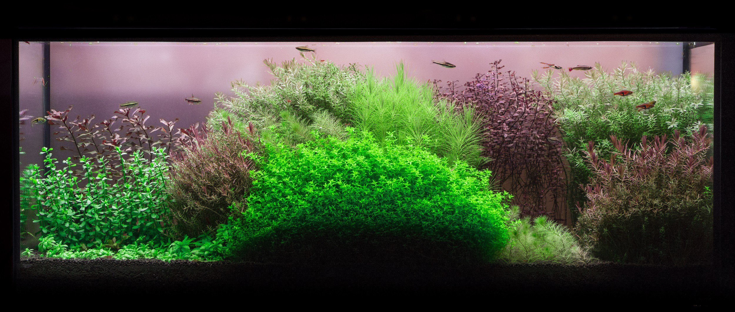 Akvárium adatok: Start 2017 december vége, 120 liter bruttó, 100x30cm alapterület, napi 9 óra DIY led világítás, TF napi tápozás, Ista Plant Soil talaj + Sera Floredepot, CO2 0-24 palackos szűrőben beoldva, Eheim 2013 külső szűrő (szivacs + mátrix töltettel), heti 40% vízcsere. Növények, halak, garnélák. Sajnos 2 növénytípus nem érezte jól magát a helyén és csere után a többiek árnyékában már nem volt idő, hogy szintre hozzam őket. Mondhatni félkész az akvárium.