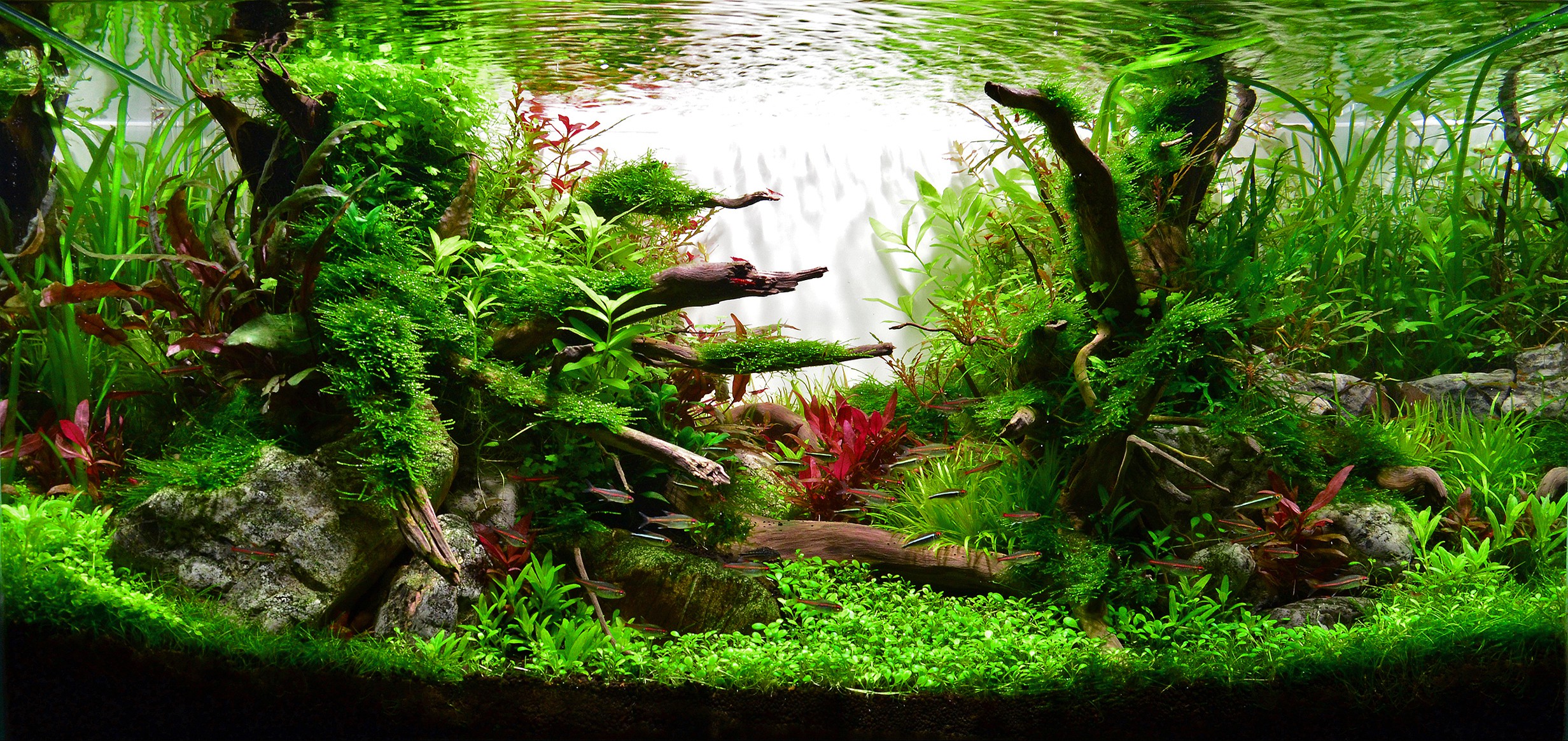 Technika - szűrés: 1. Hydor Pro 600 (3L Ocean Free 3DM Beads, 2L SERA Siporax, kerámia gyűrű/szivacs/perlon) 2. Eheim Prof. 2222 + Aqua Medic Helix max 9W (kerámia gyűrű/szivacs/perlon, UV napi 8h éjszaka) - világítás: Tropic Marin armatúra, 2x24W T5(Osram 965 & Sylvania Grolux) napi 7h + Osram HQI-TS 150W/CD napi 5.5h - Magasnyomású CO2, beoldás JBL Proflora Direct 19/25 diffúzorral Hardscape - talaj: ADA Aqua Soil Amazonia 21L, táptalaj nincs - szikla: szürke görgeteg kő 61.5kg - fa: uszadék fa Növények - Glossostigma Elatinoides - Eleocharis parvula - Staurogyne repens - Micranthemum Sp. Monte Carlo - Alternanthera Reinickii 'mini - Cryptocorine Wendtii brown - Hydrocotyle Tripartita - Blyxa Japonica - Vallisneria spiralis - Ludwigia repens - Anubias nana 'petite - Rotala Rotundifolia - Hygrophila Pinnatifida - Hygrophila Polysperma - Hygrophila Corymbosa - Bolbitis Heudelotii - Microsorum Pteropus 'trident - Taxiphyllum Barbieri Halak, rákok, csigák - Hemigrammus erythrozonus - Hyphessobrycon herbertaxelrodi - Otocinclus affinis - Ancistrus sp. - Corydoras nanus - Caridina multidentata - Neocaridina heteropoda var. red - Anentome helena Víz - Gh: 7-8 °nk - Kh: 4-5 °nk - pH: 6.7-6.8 - hőmérséklet: 26 °C - vízcsere 2 hetente ~35-40%(osmo és csapvíz kb. 6:1 arányban) Tápozás KNO3, KH2PO4, mikro elemek