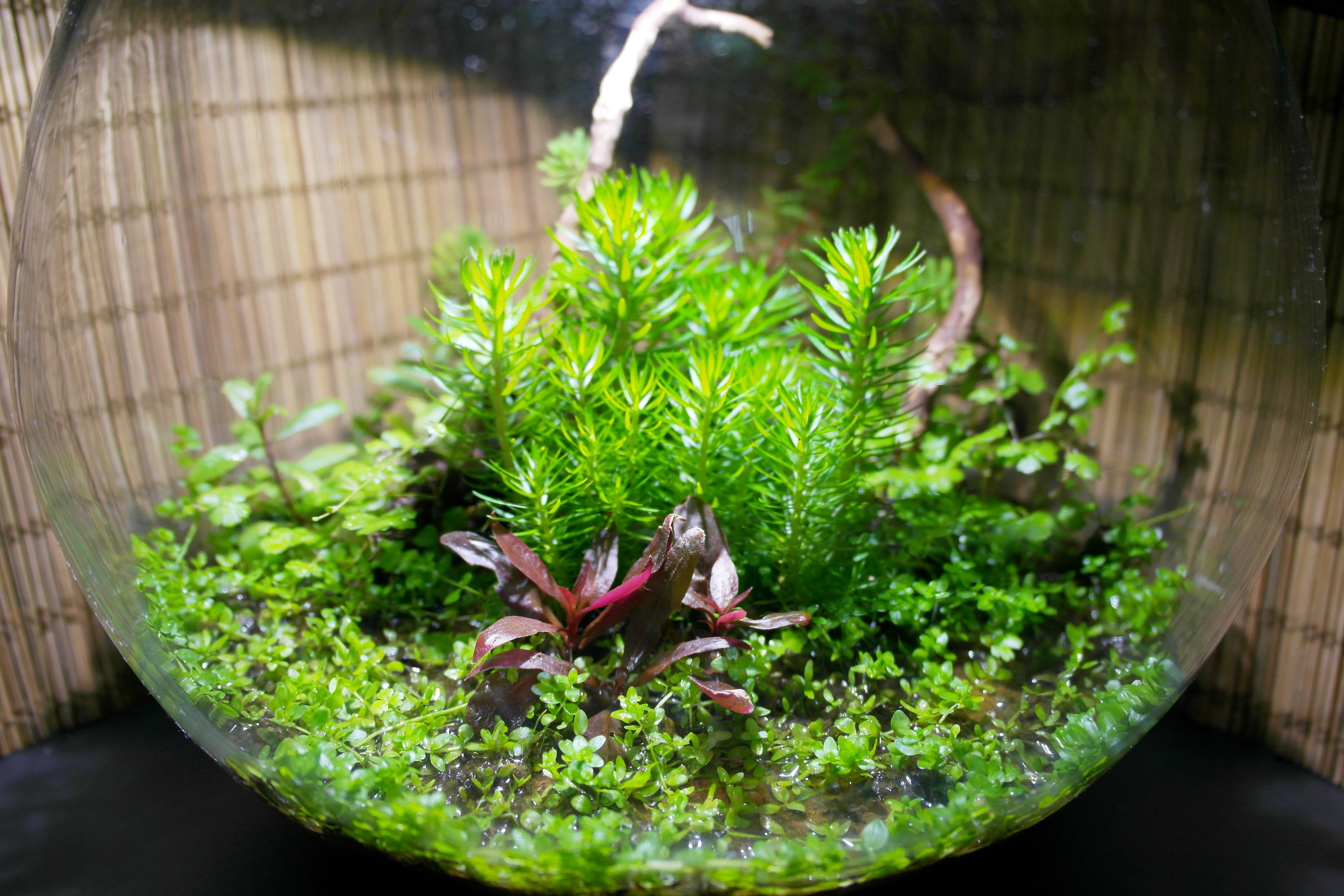 Wabi mérete: cca. 7 l Fény: 10w led reflektor 6490K 900 lumen, 12óra/nap Öntözés: kH8 -as akváriumvíz (TF tápokkal kezelve) Talaj: Tropica Substrate Növények: Pogostemon erectus, HM Montecarlo, Hygrophila polysperma, Hydrocotyle tripartita, Cryptocoryne wendtii green, Ludwigia mullerti, Myriophyllum brasiliensis, Alternanthera reineckii mini