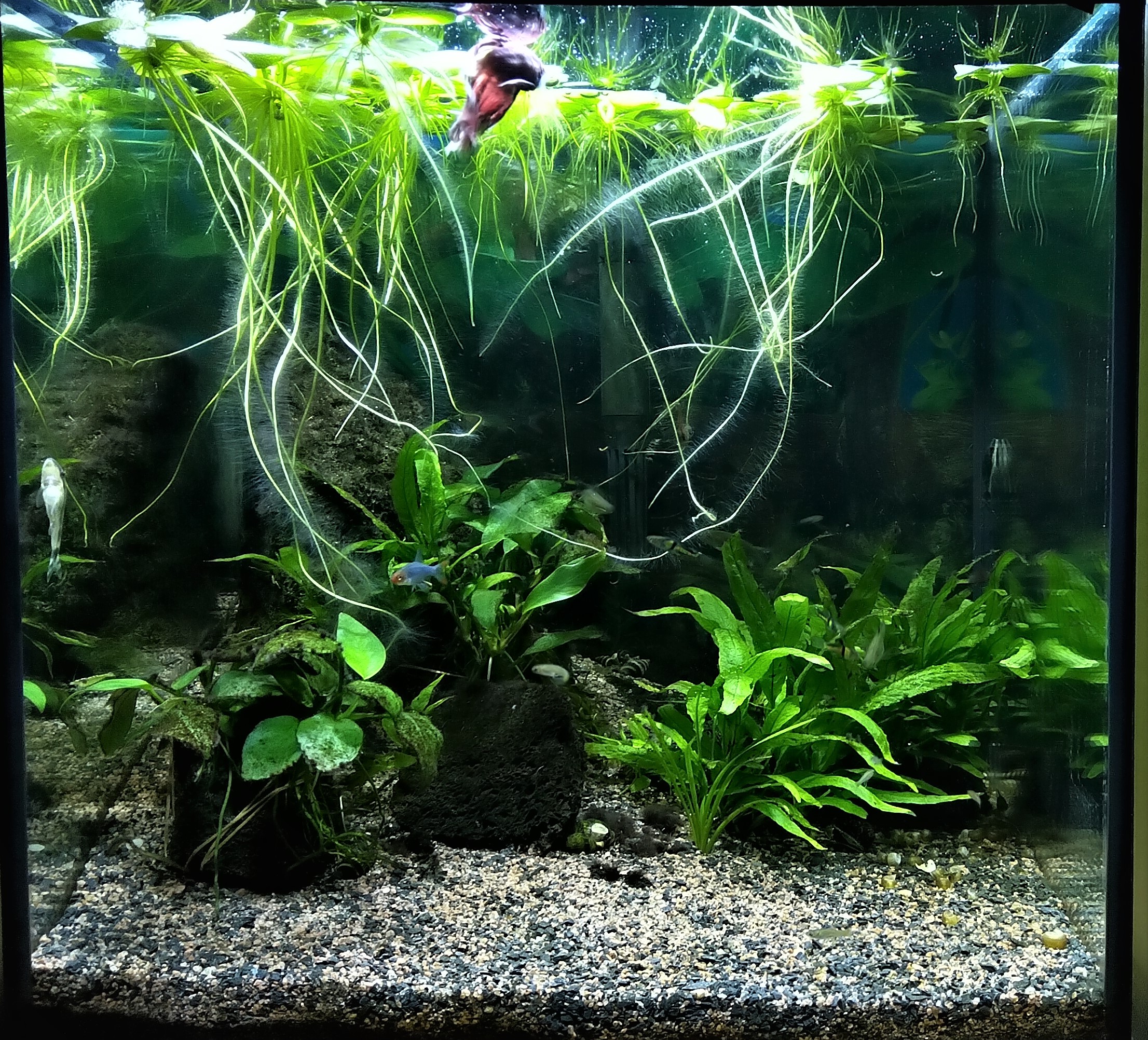 -növényzet: anubias barteri var.angustifolia;anubias barteri var.nana; microsorum pteropus'narrow'; limnobium laevigatum; és sajnos még túl sok alga