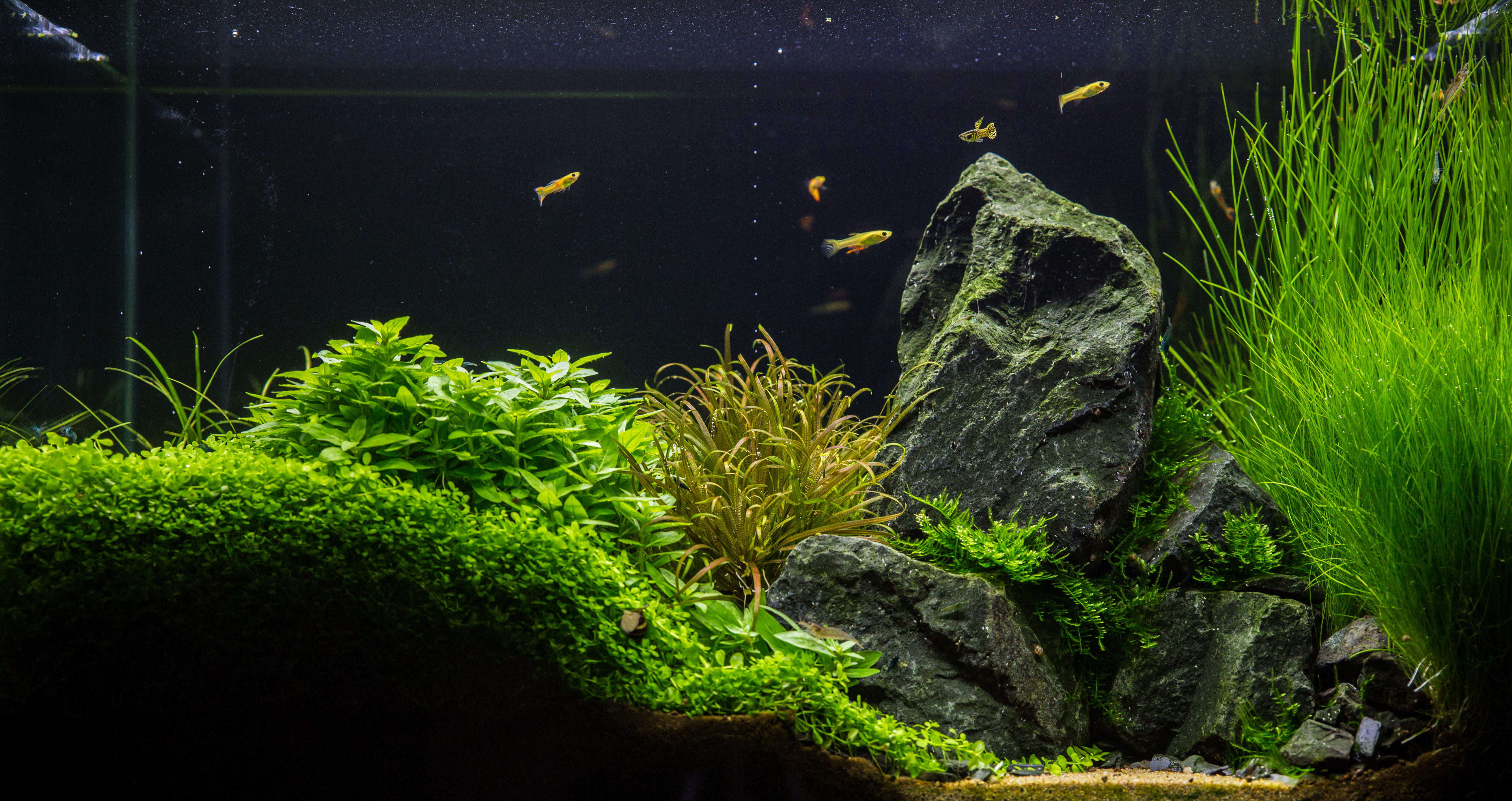 - Hardscape: Bazalt szikla, Baikal dekorkavics, Tropica táptalaj, ADA Amazonia light, ADA Colorado Sand