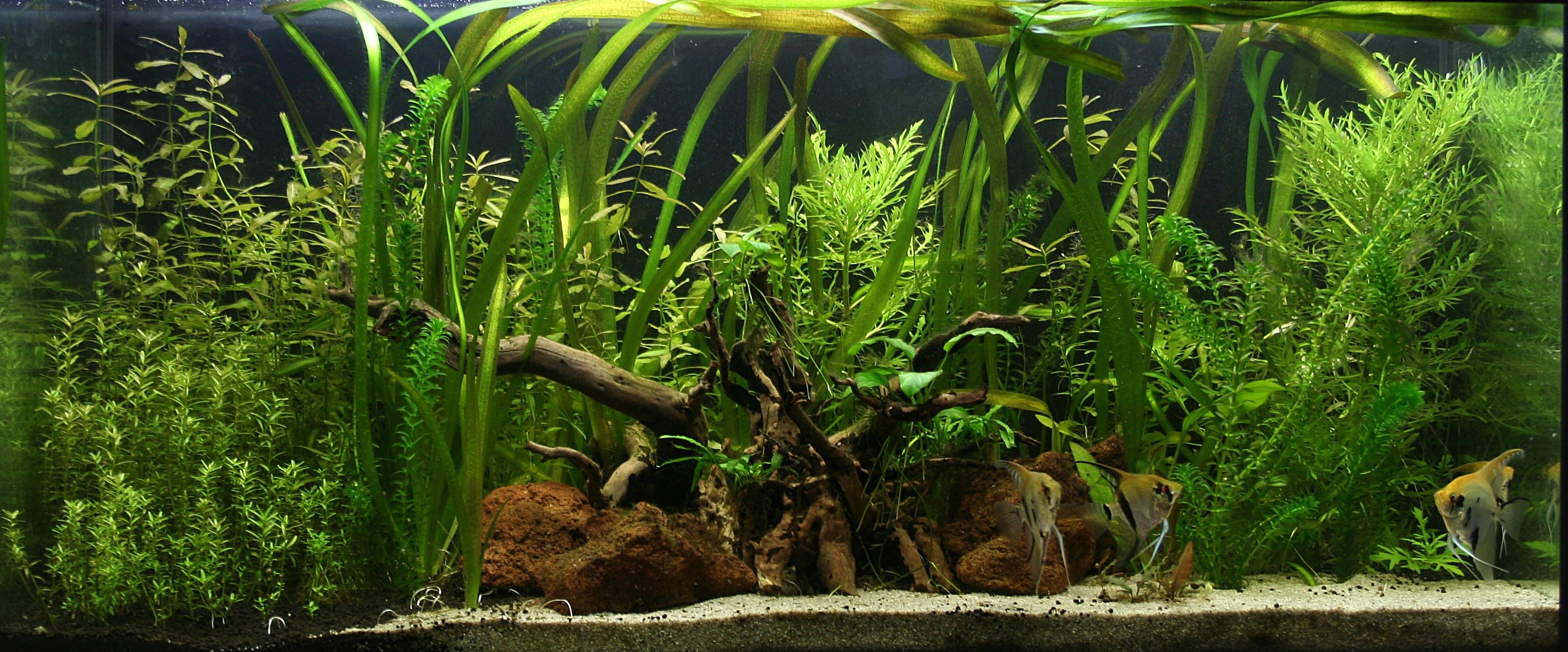 100*40*50 világitás : 3 db 88 cm-es ledes armatura 6500K-esek szűrés Atman 3336 s nagynomású co 2 TF Planter Élővilág : vitorlások , anci