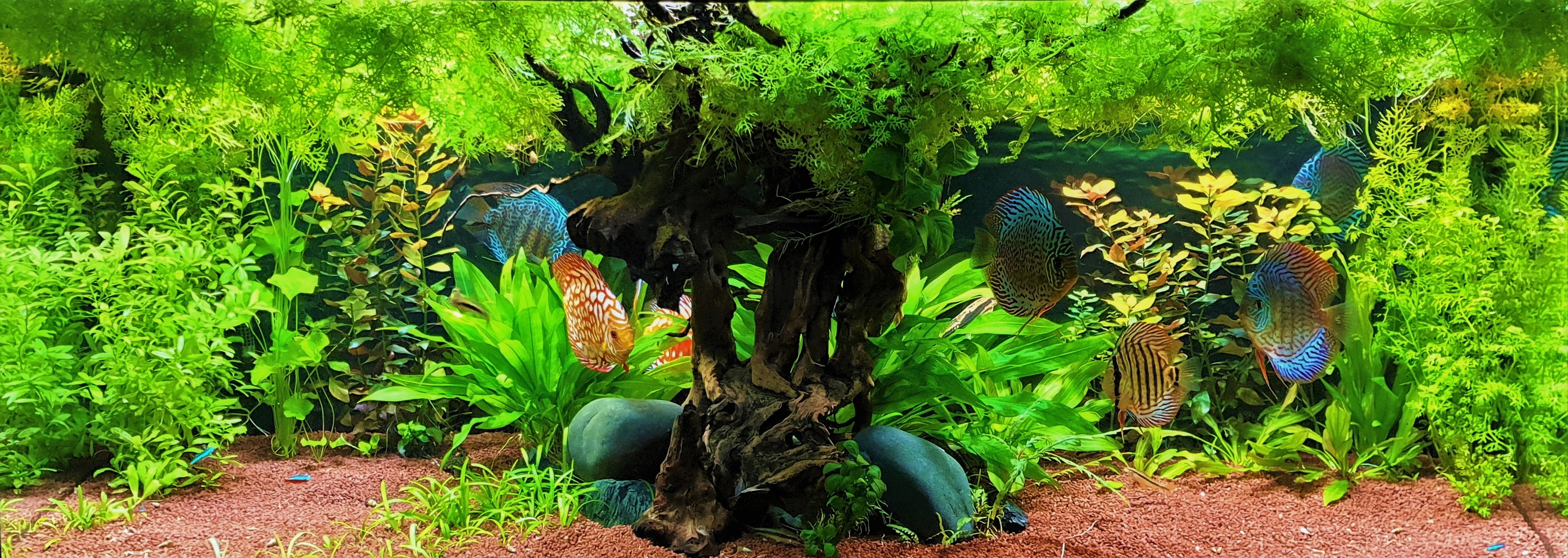 Leiràsa: Az Amazonas bozòtos, gallyakkal eltorlaszolt, nyugodt, meleg vizinövènyek ès vìzbe lògò vegetàciò vizeiben èlö diszkosz ihlette akvàrium. Làgy, savas vìzröl RO szürő , mig a vìz tisztasàgàròl 3 külsöszürő ès UV gondoskodik. 450 l-ben 9 diszkosz, 4 aggkorù neon .5 sziàmi orrmànyosmàrna, 1 Anci , 5 Oto, 2 Boszorkànyharcsa vègzi az alga ès ètelmaradèk eltakarìtàsàt. Növènyzet èrdekessège, hogy tàpanyagszegèny, 27-28 fokos làgy vizben, havi minimàlis mikro adagolàssal ,0-às vasszinttel nőtek ekkoràra(Ceratopteris Thalictroides, Hydrophilia Polysperma Rosanevig, Ludwigia Glandulosa, Echinodorus fajtàk, Nymphoides sp. Taiwan, Hygrophila Pinnatifida, Segitaria Subulata Pusilla) Sok munka fekszik az akvàrium mai formàjàban, köszönöm,ha pontjaiddal jutalmazod :)