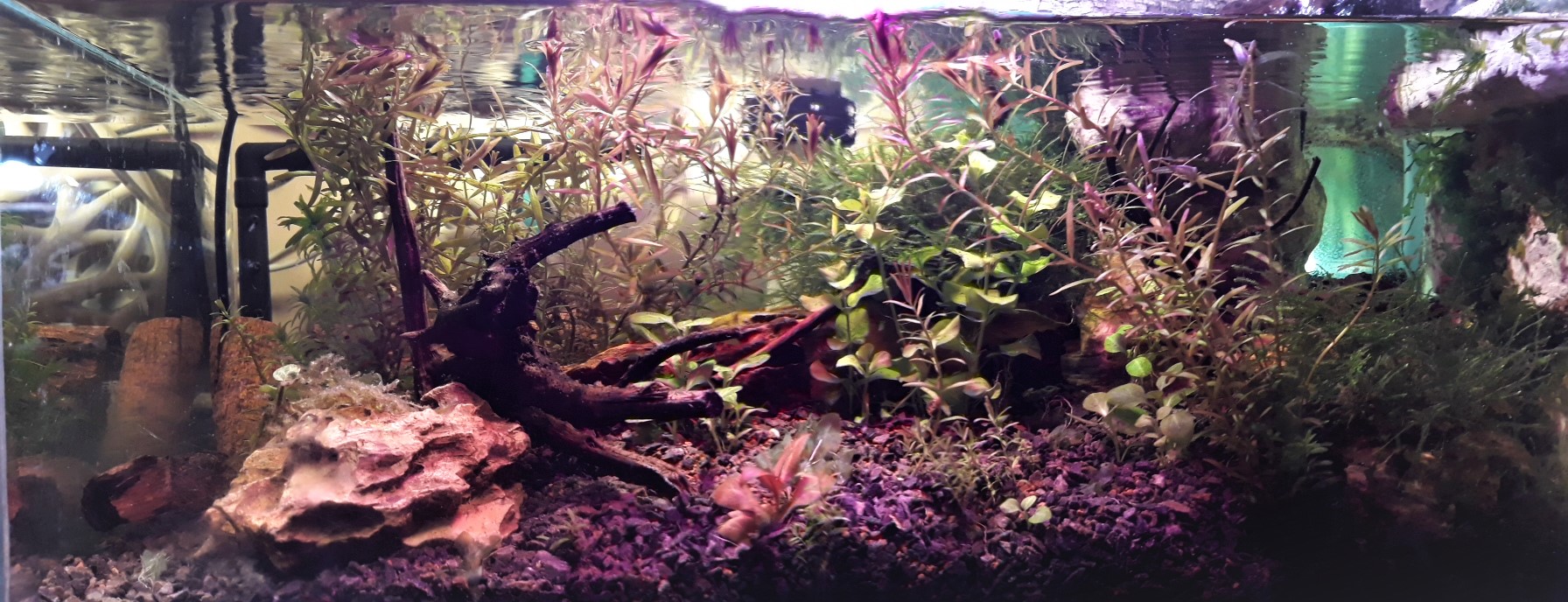Vízcsere a kálium és calcium növekedésével párhuzamban, hetente, néha előbb, 4-6 liter.