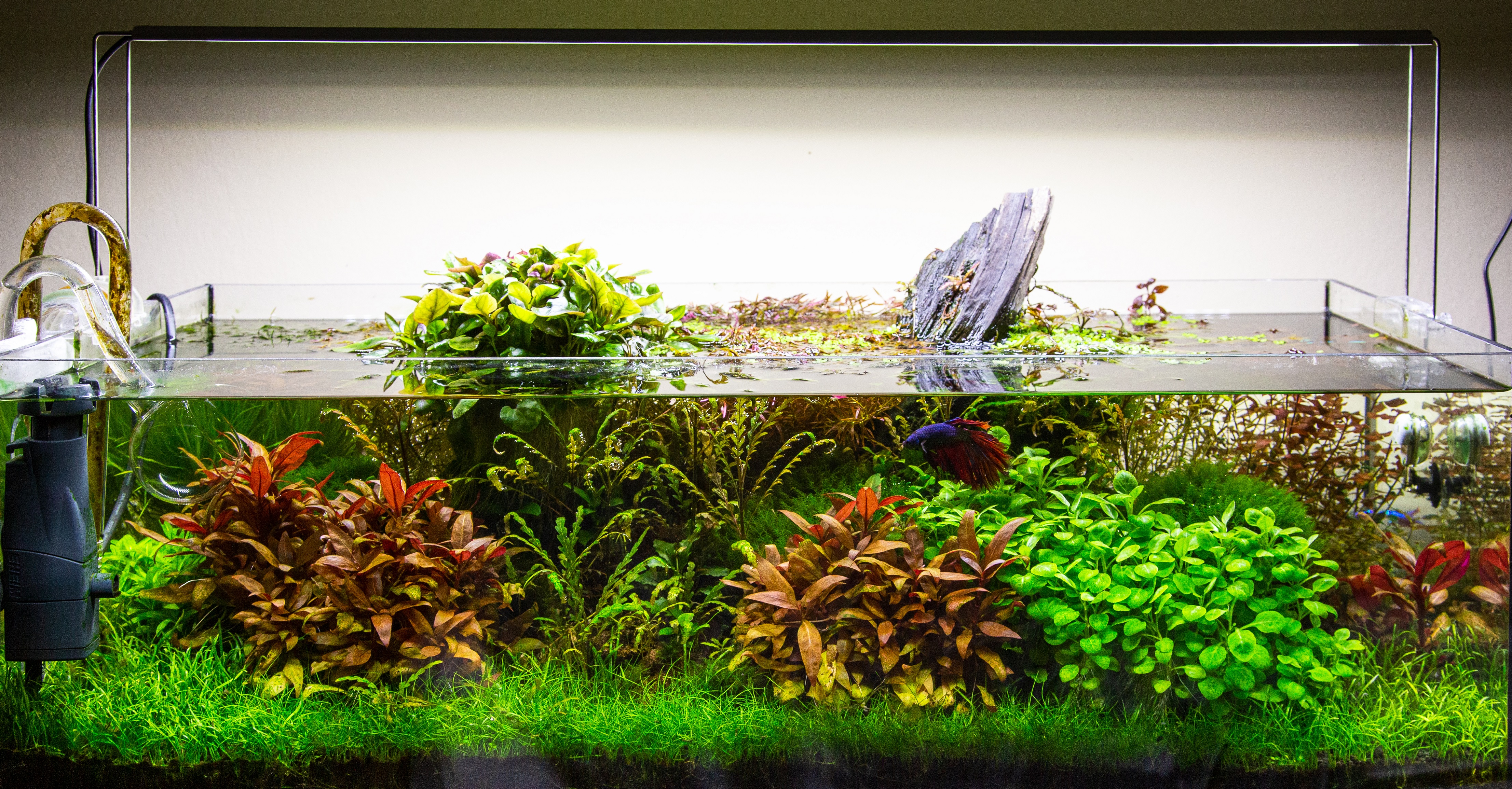 Technikai adatok: Akvárium: 70 L Szűrés: TetraTech Ex800+ Világítás: Chihiros Led A801 (megemelve) Tápozás: TF Planter, Nitrát, Foszfát, Color Co2: citromsavas rendszer