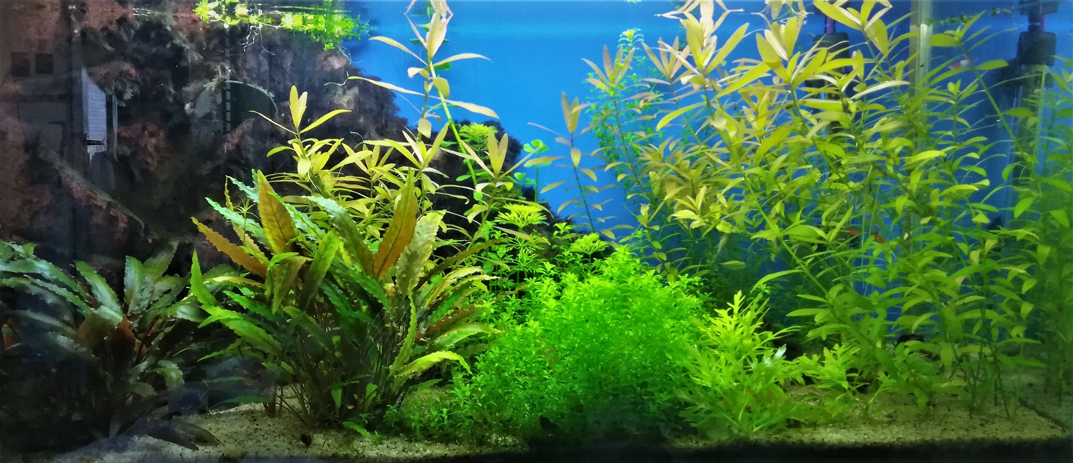 Vízcsere heti 18 liter csapvíz, párolgás ioncserélt vízzel pótolva.