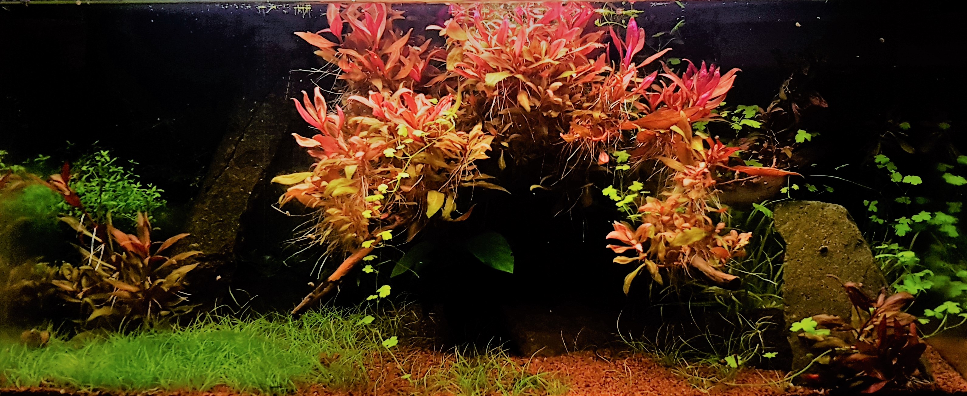 Alap növényelképzelés: Eleocharis acicularis 'Mini' /Parvula/ ; Alternanthera reineckii 'Mini' - TF Steril Később bekerültek nitrát igényesebb fajok is. Az algásodást így tudtam csak kezelni.