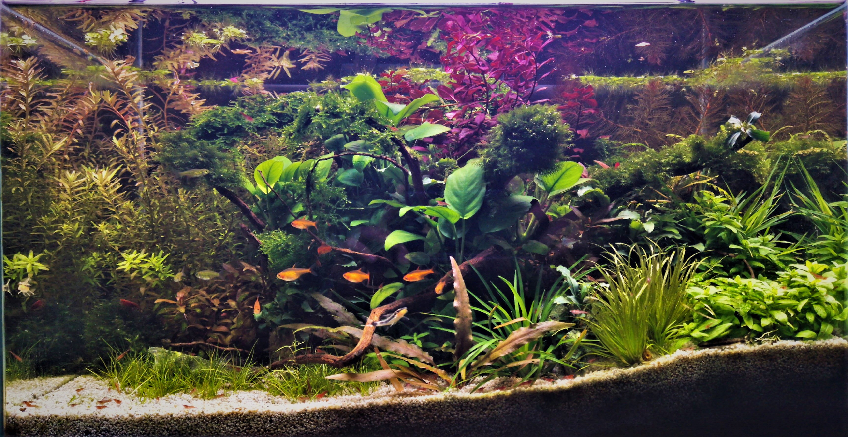 Élőlények : amanda lazac 8db, neon zöld rasbora 4db, red sakura garnéla, es 8 db otocinclus
