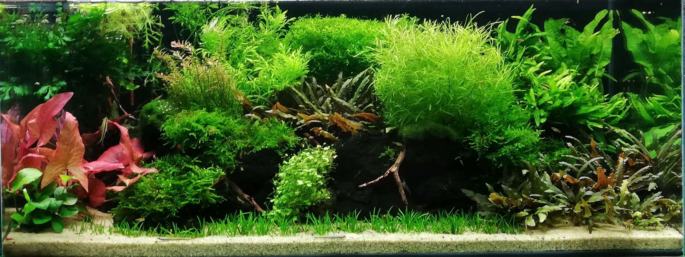100x50x40 talaj szűrő homok előtérbe és uoás zúzott bazalt. Szűrés Hidor350 gyári töltet 2hetente 25 %víz csere ró és csap víz keveréke Gh8 kh5. Világítás 2x54w odyssea t5 plant növényes cső 1 activa 6500k cső. Napi 10 órába. Víz 26C dekoráció Red mór gyökerek, black fekete lávakő, nád. Elővilag garnéla, otok törperazbórák, márnák, gébek. NÖVÉNYEK :23fajta