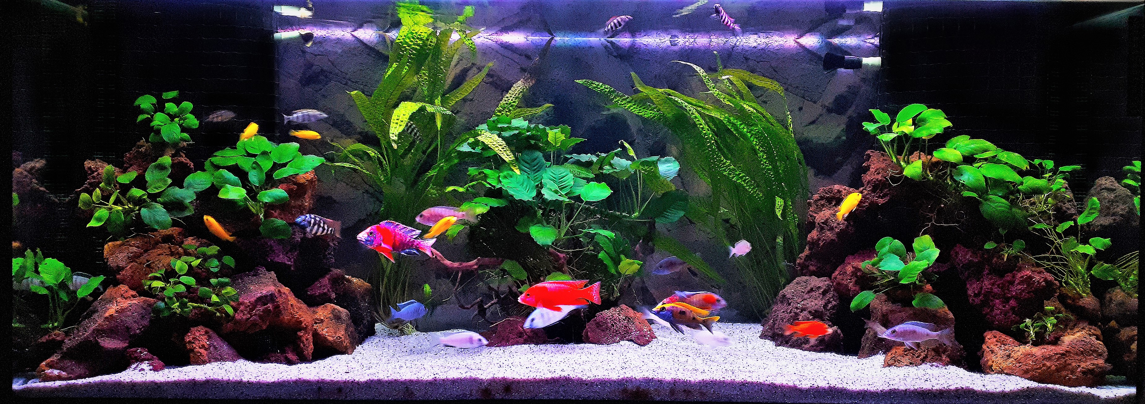 Halak: Aulonocara firefish, Aulonocara OB marmalade, Aulonocara Stuartgranti chiloelo, Aulonocara Eureka, Otopharynx lithobates, Placidochromis electra, Protomelas sp. "johnstoni solo", Labidochromis caeruleus, Pterygoplichthys gibbiceps, Botia striata, Botia almorhae