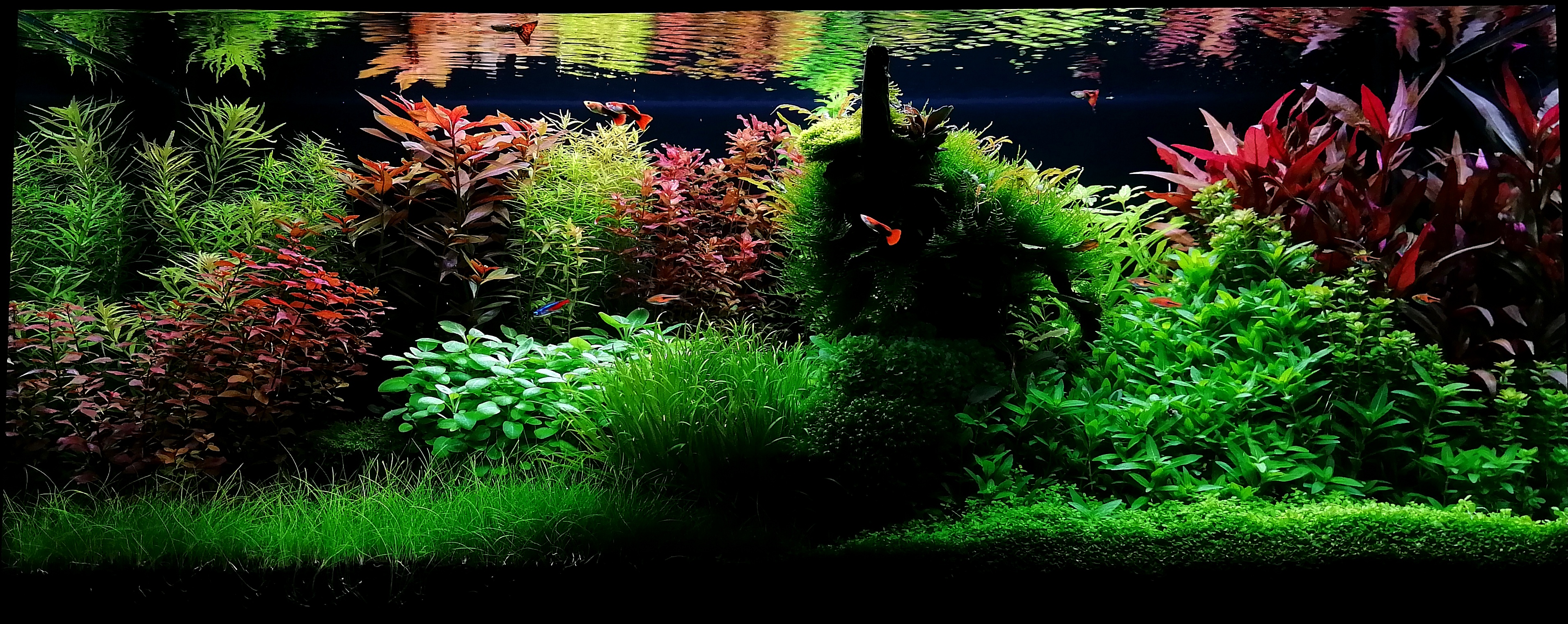 Akvárium adatok Akvárium méretek: 110cmx40cmx45cm(h,sz,m)198l Üvegvastagság: 10mm float üveg Szűrés: 1 db.Tetra ex 1200 plus 1db.Tetra ex 600 plus Szűrő töltetek: Sera siporax Ponce kő Szivacs (sorrend:alulról felfele) Világítás: Odyssea T5 fénycső 4X39W=2db plant(növényes)+2db 6500K(nappali) Világítás idő: 8,5 óra naponta 13:00>21:30 között Talaj: Tropica aktív talaj- 3x9l Táptalaj: nincs Akvárium dekoráció: Red moor gyökér KB. 5kg lávakő Víparaméterek: gh7/Kh0-1 Tds:280ppm Tápozás: MasterLine tápok Makró:8 pumpa naponta Mikro: 7 pumpa naponta Kálium:2 pumpa naponta Vas: 2 pumpa naponta Carbo: --- Co2: Napi 12 órában 3 bubi/másodperc Co2:-Reaktoros beoldás Vízcsere: 30% hetente lágy vízzel RO (Reverse osmosis) Gh+ emeléssel házi recept alapján + 2-3 pohár csapvíz hetente