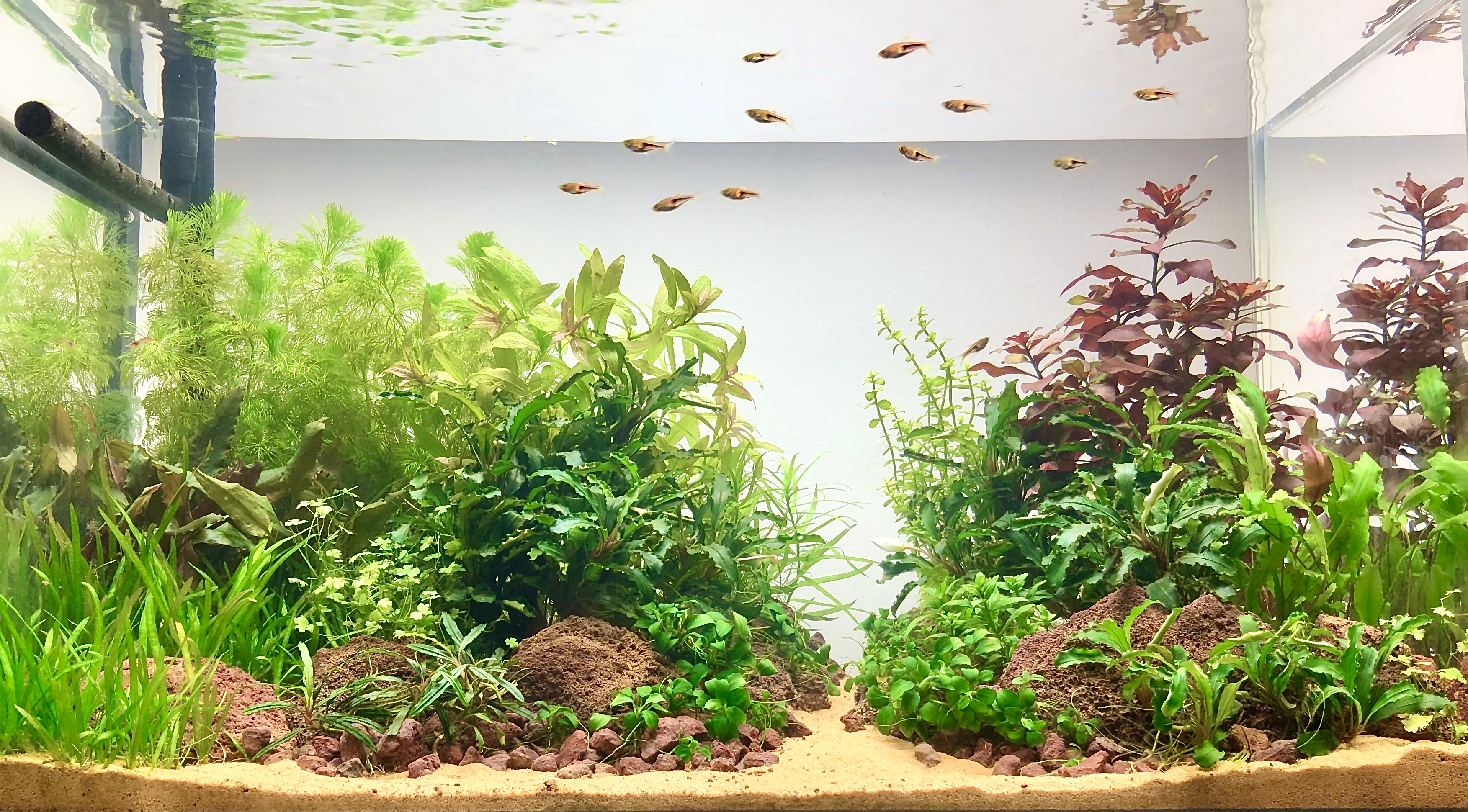 Szűrő: JBL CristalProfi e701 Világítás: Odyssea Dual Pro 2x24 W 6500K Aljzat: JBL Manado Dekor: Lávakő, dekorhomok