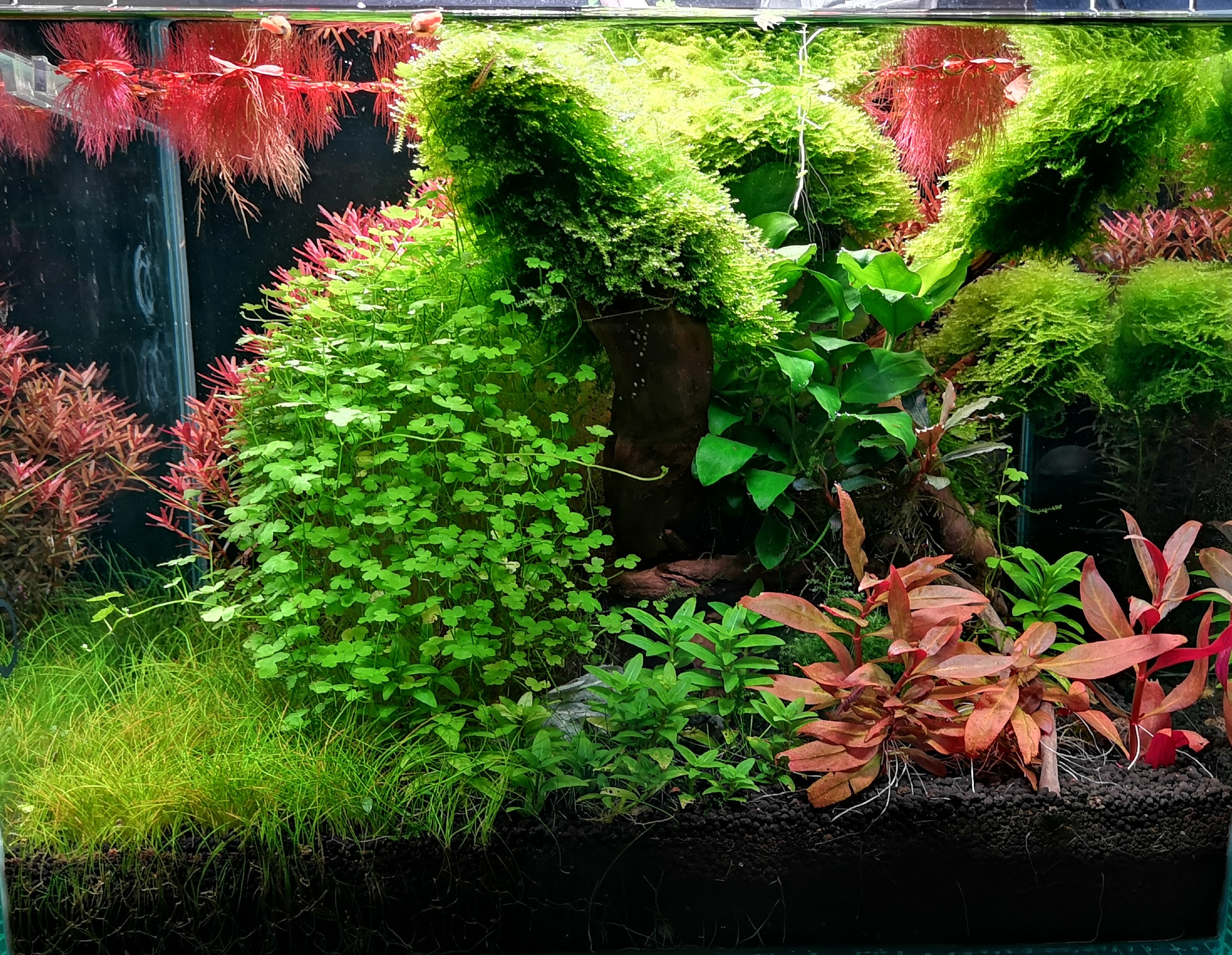 Világítás: Chihiros A301 RGB Plus napi 9 óra Szűrés: Eheim 2213 Talaj: Tropica Táp: TF tápok napi Planter 0.25 ml Macro 0.5 ml Co2 van napi 12 órában. Lágyvízes az akvárium. Garnélák és csigák lakják.