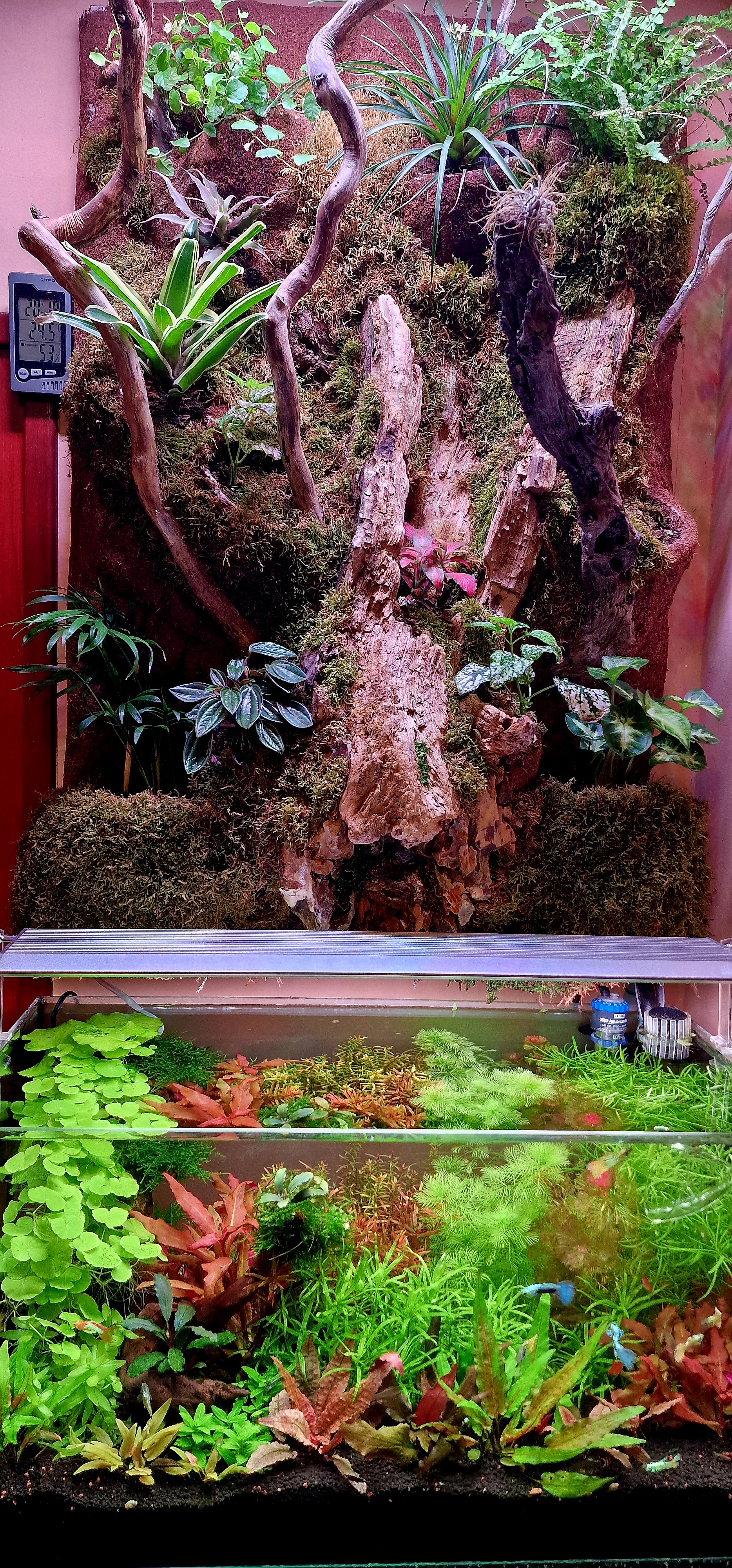 60x120cm es Növényfal alkotja, amely egy 54L es akváriumra van ráültetve.