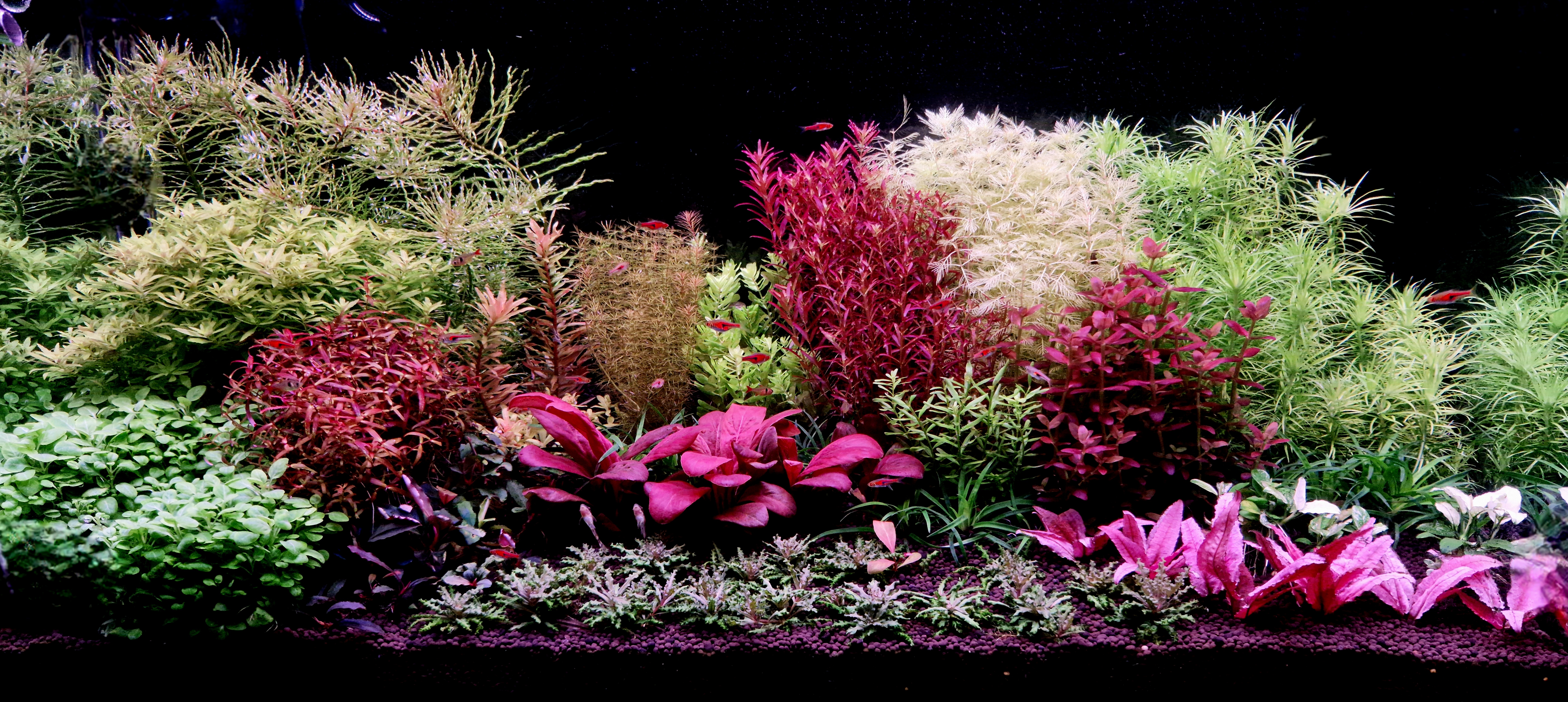 Ludwigia Curly Tornado, Limnophila Aromatica Mini, Lobelia Cardinalis Mini, Rotala Narrow Leaf, Nesea sp. GOLDEN, Rotala Cambodia, Rotala Sahyadrica, Rotala Singapore, Myriophyllum Golden, Syngonanthus sp Meta, Samolus Parviflorus Red, Rotala Laos, Bacopa Salzmannii Purple, Eriocaulon sp. Vietnam, Anubias Pinto White, Cryptocorine Wendtii Pink Panther, Pogostemon Helferi Red, Bucephalandra Brownie Ghost 2011 & Blue Shine.