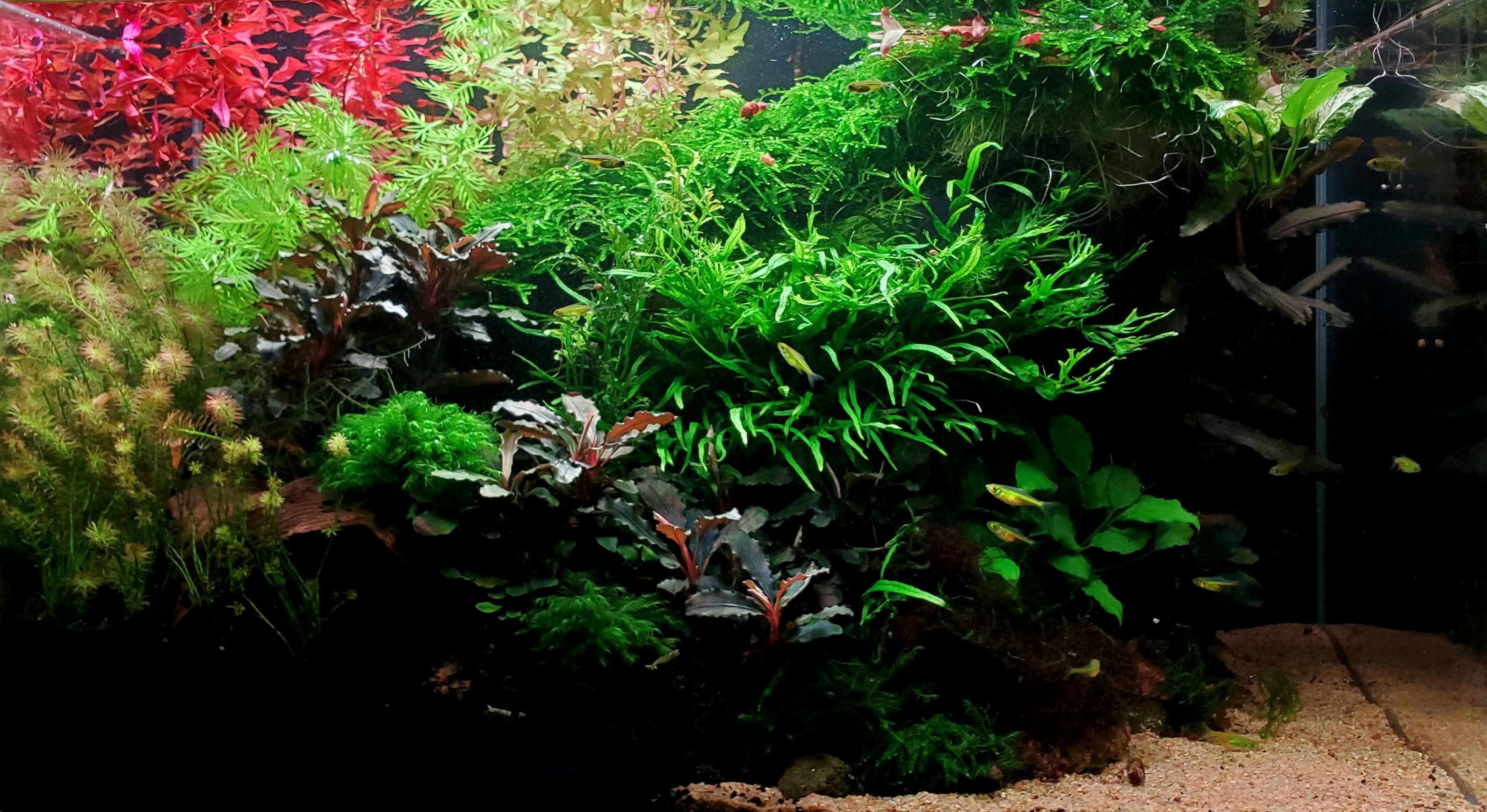 Növények :alternantera reinicki, microsorum trident és windelov, Vesicularia Dubyana, anubias pinto, bucephalandra brownie red, bucephalandra deep purple, myriophyllum Guyana, rotala narrow leaf, rotala wallichii,rotala macranda green, ludwigia palustris, hottonia palustris, fissidens fontanus, schismatoglottis prietoi, bucephalandra moss bolbitis mini, hedyotis salzmannii. .