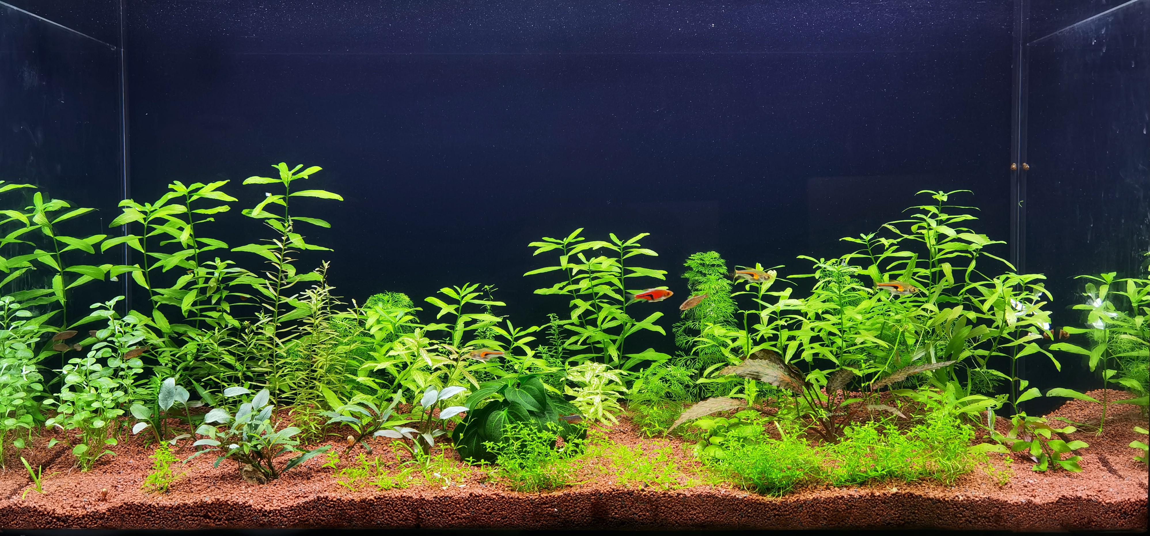 Ez az akvárium a kisfiam ovijában található, sajnos nincsen a legjobb formájában mivel a heti vízcseréken kívül nincsen nagyon rá időm????, így a tápozás is össze vissza van, meg a dadusok is etetnek össze vissza